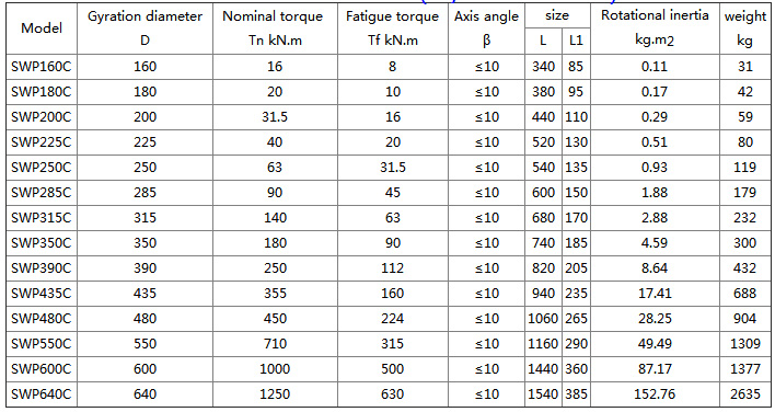 Features and applications: Bearings are wearing parts. In order to facilitate the replacement of the bearing, the bearing seat gland is made into a split type, bolted, and can work under the condition of β≤5°~10°. Applicable to rolling machinery, lifting and transportation machinery, engineering machinery, mining machinery, petroleum machinery and other heavy machinery, connecting two different axes of shaft drive, can not buffer, reduce vibration.