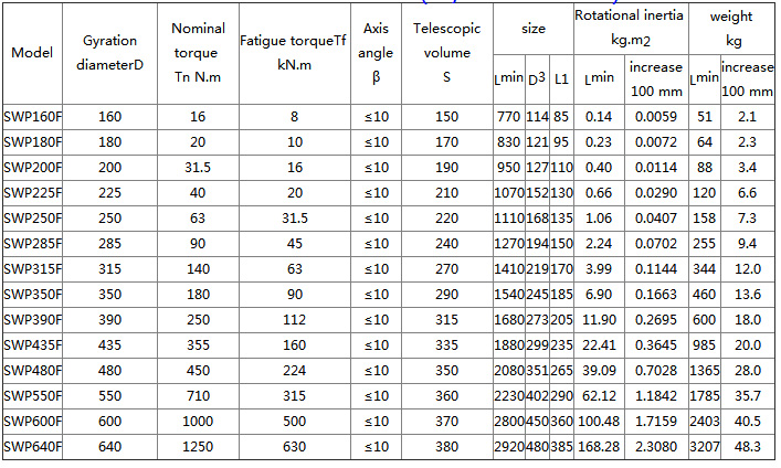 SWP-F universal coupling Features and applications: Bearings are wearing parts. In order to facilitate the replacement of the bearing, the bearing seat gland is made into a split type, bolted, and can work under the condition of β≤5°~10°. Applicable to rolling machinery, lifting and transportation machinery, engineering machinery, mining machinery, petroleum machinery and other heavy machinery, connecting two different axes of shaft drive, can not buffer, reduce vibration.