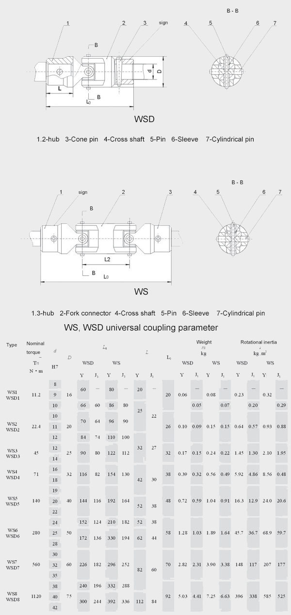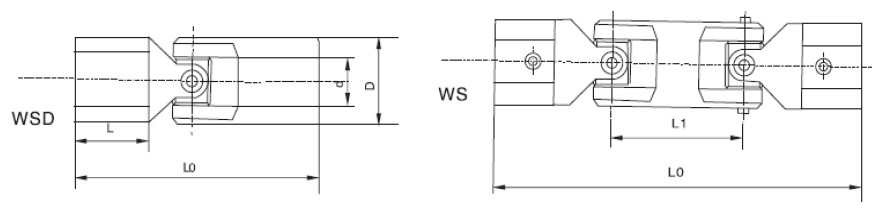 WS/WSD Small Universal Shaft Features and Applications: Work with low torques at less than 45. It is suitable for transmission shafts that are mainly connected to different shafts and cannot function as buffering and damping. The keyway, hexagonal hole, and square hole can be opened as required.