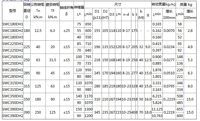 SWC-DH型短伸縮焊接式萬向聯(lián)軸器基本參數(shù)與主要尺寸 (JB/T 5513-91) mm